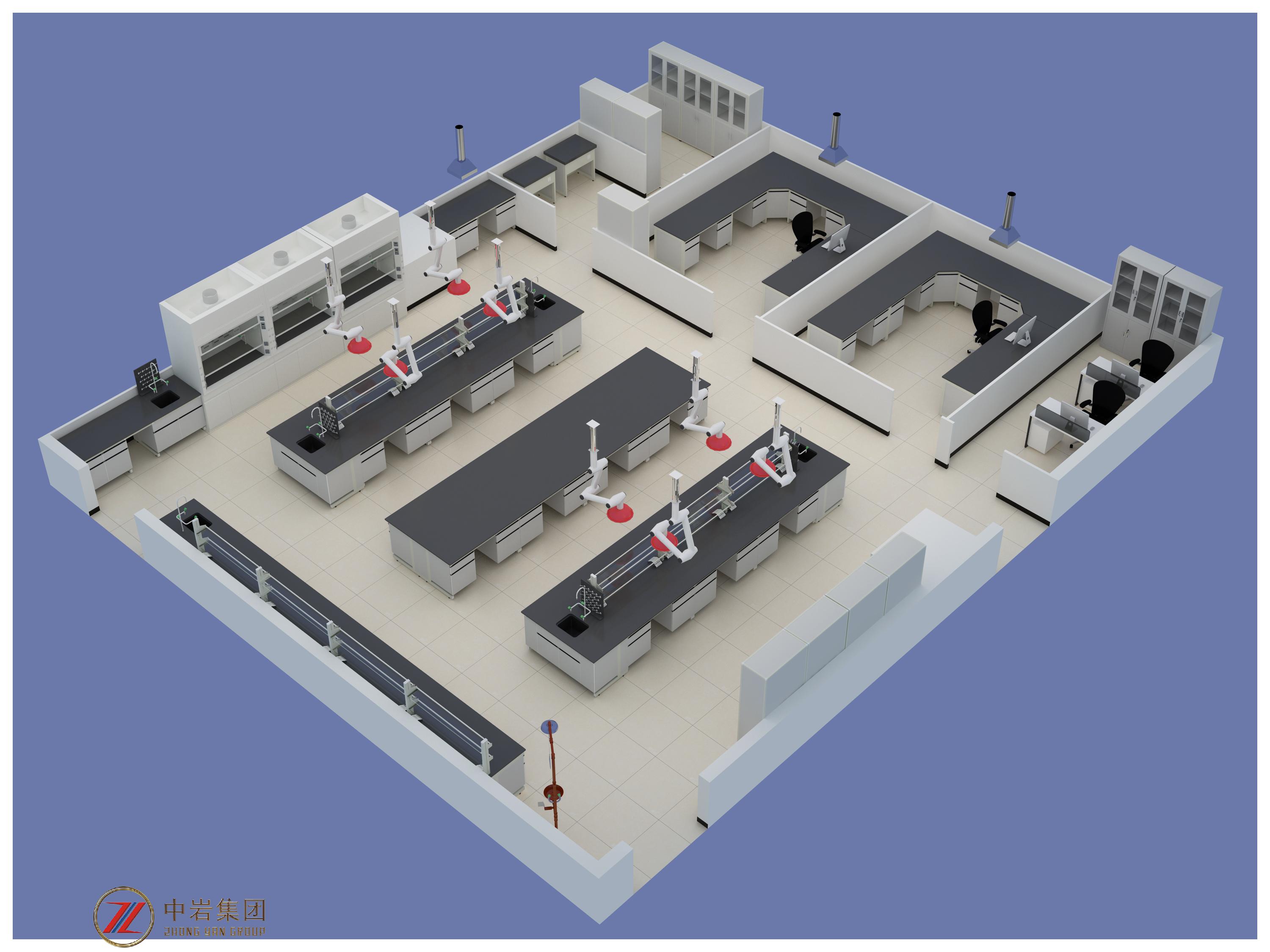 福建中巖實驗室主要從事:①實驗室家具(通風柜、中央臺、邊臺、藥品柜、試劑柜等)鋼制產(chǎn)品的設計研發(fā)及生產(chǎn)安裝,②實驗室的裝飾裝修工程設計與施工(隔斷、地面、吊頂、給排水、強弱電等),③暖通系統(tǒng)工程設計與施工(凈化空調(diào)、新風系統(tǒng)、智能化通排風系統(tǒng)(通風柜、原子吸收罩、萬向罩、生物安全柜、房間整體等)、壓力梯度控制系統(tǒng)、PLC控制系統(tǒng)等),④廢氣廢水集中處理工程設計與安裝(噴淋塔中和處理、活性炭箱吸附處理、UV光解處理等),⑤集中供氣系統(tǒng)設計與安裝、⑥集中純水系統(tǒng)設計與安裝,⑦各個功能型實驗室:中心實驗室、分子實驗室、病理實驗室、高通量測序?qū)嶒炇摇游飳嶒炇摇z測實驗室、前處理實驗室、冷庫等安裝工程;